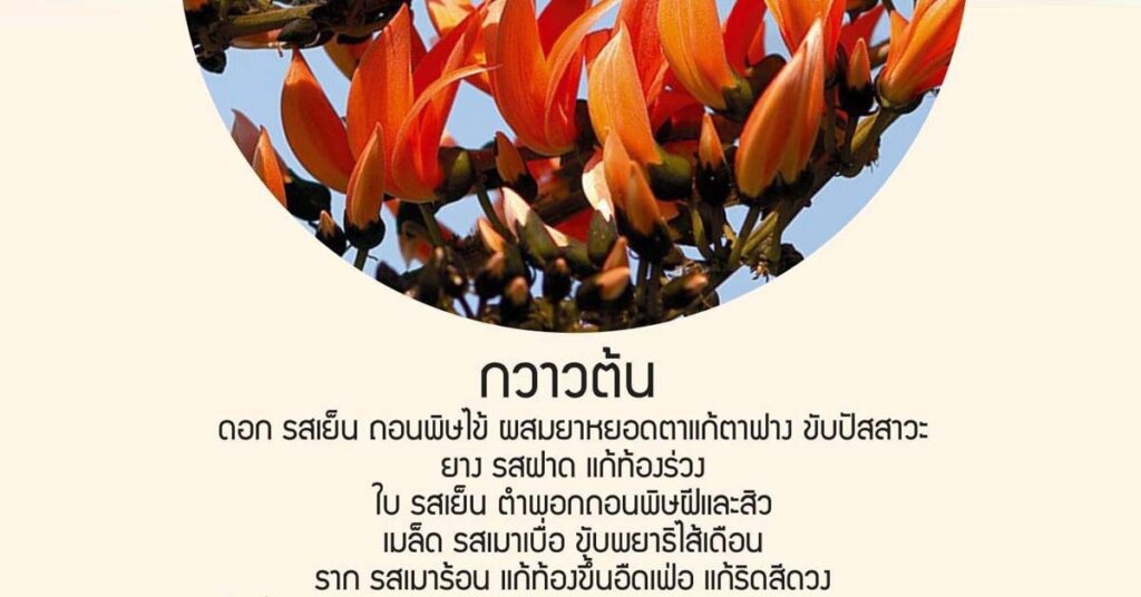 - ทองกวาวมีสรรพคุณช่วยแก้อาการท้องขึ้น (อาการท้องอืดเพราะลมในกระเพาะอาหารเฟ้อขึ้น) (ใบ)